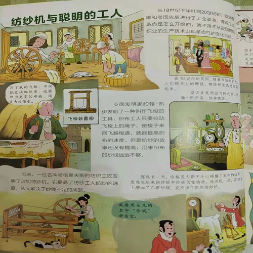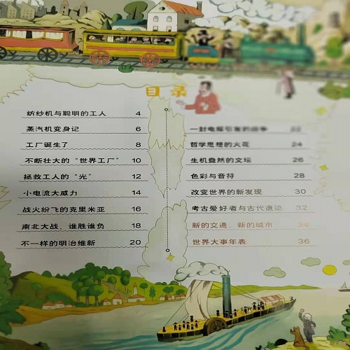 纺纱织布,挖煤炼铁。 城市里建起了大工厂,人们的物质生活水平得到提升。 工人们却实在太辛苦,白天黑夜都要工作。 人们发现了电的奥秘,电话、电报机、电灯泡纷纷登场。 女王办起了博览会。 记者、护士勇敢地冲上战场。 文艺圈风生水起。照相机也来凑个热闹。 火车、汽车、自行车,新的城市在向人们招手。 这就是疯狂的工业时代!
