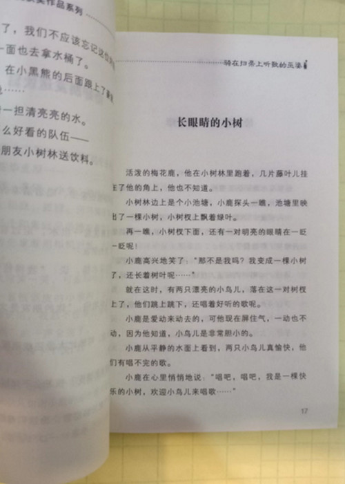 《骑在扫帚上听歌的巫婆》:收录了中篇童话19篇。有一次,受伤的小鸟“巧嘴”搭乘巫婆的扫帚去看医生。在飞行途中,巫婆和“巧嘴”一边唱歌,一边驾驶扫帚,结果差点掉到河里,接下来又迷了路,还收到巫婆警察的罚单。幸亏巫婆及时醒悟过来,专心驾驶扫帚,安全到达了目的地。经过这次飞行,巫婆做事变得专心了。该书是儿童文学作家张秋生老师的短篇童话故事集。故事短小精悍而富有童趣,且充满了教育意义,十分适合小学生阅读。