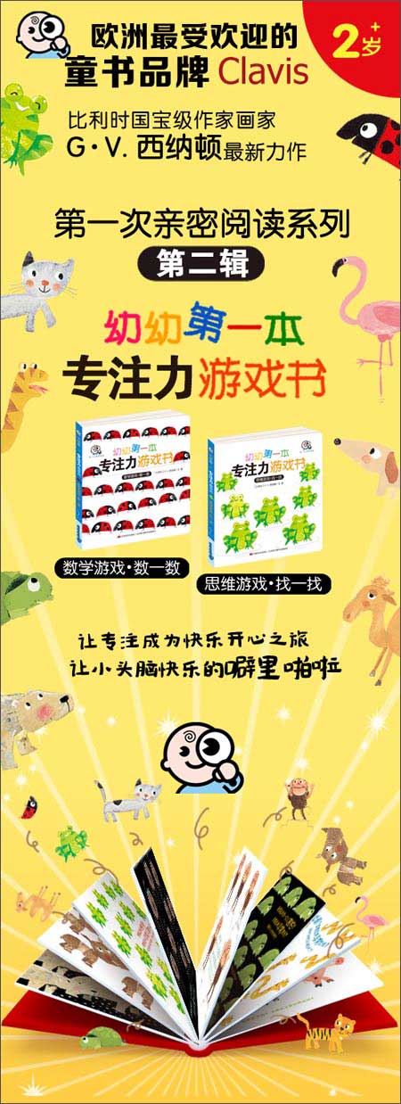 《幼幼第一本专注力游戏书(套装共2册)》是比利时著名作家及插画家G.V.西纳顿的最新作品,专门为开启幼儿的专注力而准备。健康环保的印刷,安全无毒发材质,更为幼儿量身打造的、适合他们小手翻阅的纸板书。色彩协调、画面柔和,充分考虑到保护幼儿的眼睛。看似简单的画面情境却蕴藏着无限的知识。让幼儿爱上阅读、培养专注力、学会思考、开启想象,让小头脑噼里啪啦地动起来,让您和孩子一起来享受这美妙的阅读时光吧!