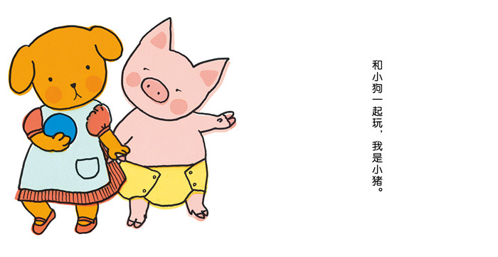 对于0-3岁的幼儿,在自我认知的发展过程中,亲子游戏以极具教育性的互动方式发挥着独特的作用。1987年,日本幼儿绘本大师北山叶子创作了“0-3岁幼儿自我认知绘本”的第一本书《这是我呀!》。小猪宝宝通过憨态可掬的自我介绍、简介反复的语言展示着“自己”,简明有趣的形式非常适合低龄宝宝和爸爸妈妈互动。这本书在日本大受欢迎,重刷了28次,全套书由此应运而生。它们以各种各样的互动方式展示了小宝宝自我意识发展的6个方面——认识自己、认识自己的身体、认识自己爱吃的食物、认识自己的生活物品、认识新事物、认识自己的好朋友。