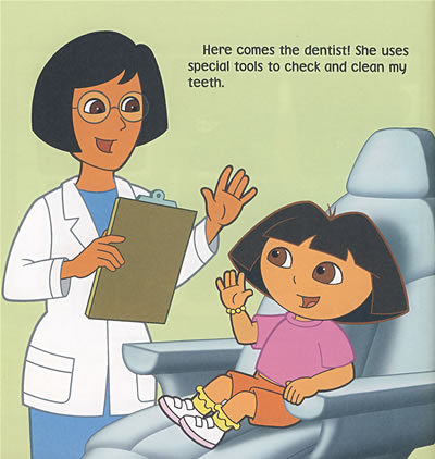 Dora visits the dentist for a checkup. During her visit sheexplores the dentist's office, gets her teeth flossed and cleaned,and even has a cavity filled. Includes four Spanish words. Fullcolor.