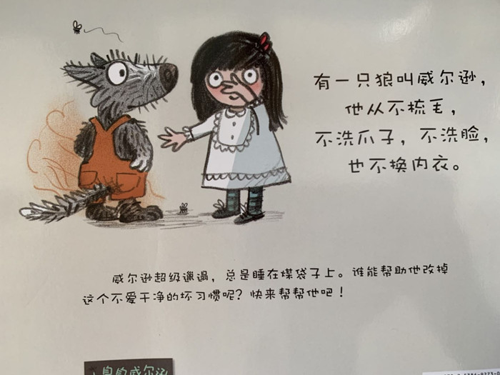 有一只狼叫威尔逊,他从不梳毛,不洗爪子,不洗脸,也不换内衣。威尔逊超级邋遢,总是谁在煤袋子上。谁能帮助他改掉这个不爱干净的坏习惯呢?快来帮帮他吧!