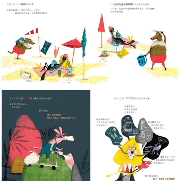本书以独特的画风讲述了一则富有教育意义的故事:一向爱作威作福的狮子自封为森林之王,自我封号“王中王”,对其他动物随意发号施令。并给其他动物乱起绰号:“爱哭包”“啥也不会”“鸡蛋脑袋”……终于,鸽子受不了狮子的发号施令,选择离开,去海边追寻自由的生活。后来,其他动物也陆续扔下手中狮子派的任务,去海边安家。当狮子成为孤家寡人时,狮子也来到了海边,不改往日的专横,继续命令他的“臣民”,而他会得到怎样的回应呢?