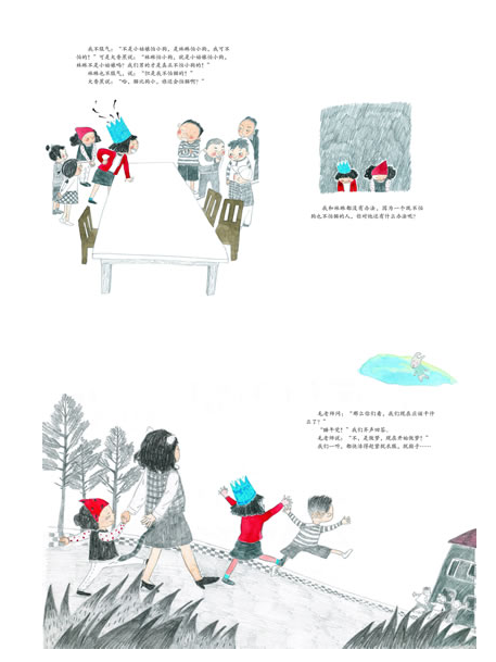 骑上小狗走到马路上去,当然不太可能。因为小狗不是马,也不是牛,而且也不是骆驼,可是说曾经骑上小狗走到马路上去却是可能的,而且这样说,很好玩。猫咪老师说她骑过大老虎也好玩,哪怕她说骑过小猫也照样好玩。这都是想像的童话。童话不只是写在书里的,更是在小孩们的这些可爱的“胡说”里的。这不是撒谎,我们千万不要说:“不许撒谎!”这是和伦理没有关系的。反过来,如果我们不许孩子们想想这样的童话,说说这样的童话,只允许他们说怎么背着书包上学,看见天空云,地上花,心里愁,那么别说一个孩子的故事有多乏味,多虚假,整个民族和国家也会越来越空洞,让人哭笑不得。天真想像不是撒谎。快乐“胡说”恰好是真的童话。所以谢谢大香蕉。