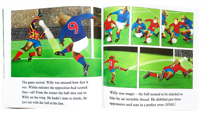 Willy因为买不起足球鞋,其他的队员对他很冷漠。后来,Willy遇到一个感觉很熟悉的却是虚幻中的人,穿着一套过时的足球服——“和Willy记忆中爸爸穿的足球服一样。”他们两个一起踢球,这个陌生人*后解开鞋带把球鞋送给了Willy。在接下来的球队练习中,这双鞋使Willy成了球场明星。然而,当Willy参加一场重要比赛时,他忘了带那双球鞋。Willy穿上另一双球鞋比赛,没想到,Willy表现得像个魔术师(Wizard)一样,吓晕了对手,还得到了关键的决胜分。