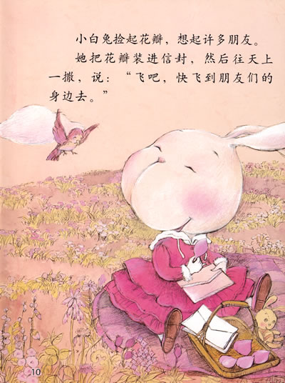 一只小白兔住在一棵桃树下,当暖风吹过,树上飘下许多花瓣,粉粉的,非常漂亮。小白兔想让自己的朋友也看到这些美丽的花瓣,于是她开始写信,信里夹着馨香的桃花瓣儿……