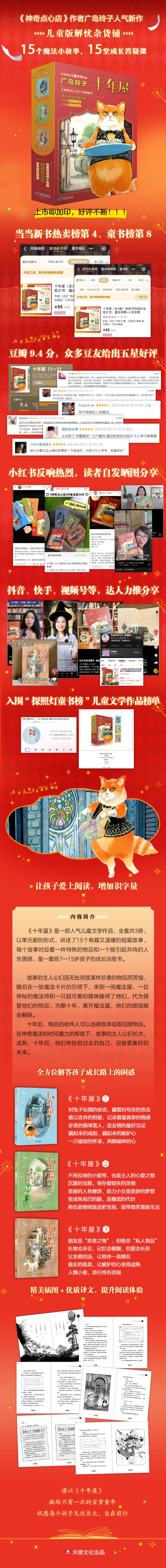 全套书以单元剧的形式,讲述了15个魔法故事和3个暖心番外。故事的主人公们因为无处存放某件珍贵的物品而苦恼,随后在一张魔法卡片的引领下,来到一间魔法屋,一位魔法师和一只超可爱的猫咪接待了他们,告诉他们可以代为保管他们的物品,为期十年,离开魔法屋,他们的烦恼就会解除。十年后,他们或他们指定的收件人可以选择放弃或取回这件物品。
