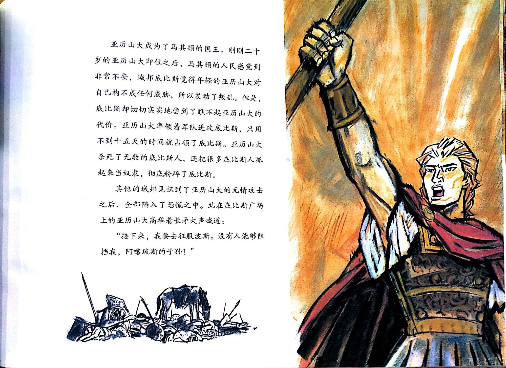 读完亚历山大的故事,是不是有所启发呢?他年少时展露头角,继承帝国的统治后开启征服世界的征程。他足智多谋,在担任马其顿国王的短短13年中,雄才大略,东征西讨,建立起了横跨欧亚非的庞大帝国,创下了前无古人的辉煌业绩。是什么支撑他征服世界?是什么让他在众多人反对的情况下,仍要征服东方的世界?