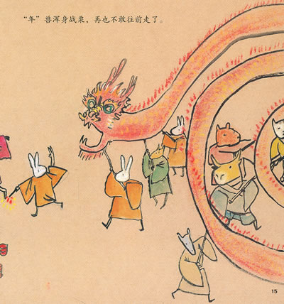 本书讲了一个关于古时候叫“年”的怪兽的故事。每到除夕,它就会闭进村庄作恶。有一年,“年”来到桃花村,从村外来了一位老人,他在祠堂门上贴上大红纸,祠堂内点上蜡烛,等“年”来到时,又让人点起爆竹,从而降服了“年”。至此,每逢除夕,家家贴红联,放爆竹,户户烛火通明。初一还要走亲串友去拜年。我要告诉你的是:热爱我们的节日吧,因为它是我们民族的传统文化的智慧。 本书讲了一个关于古时候叫“年”的怪兽的故事。每到除夕,它就会闭进村庄作恶。有一年,“年”来到桃花村,从村外来了一位老人,他在祠堂门上贴上大红纸,祠堂内点上蜡烛,等“年”来到时,又让人点起爆竹,从而降服了“年”。至此,每逢除夕,家家贴红联,放爆竹,户户烛火通明。初一还要走亲串友去拜年。我要告诉你的是:热爱我们的节日吧,因为它是我们民族的传统文化的智慧。