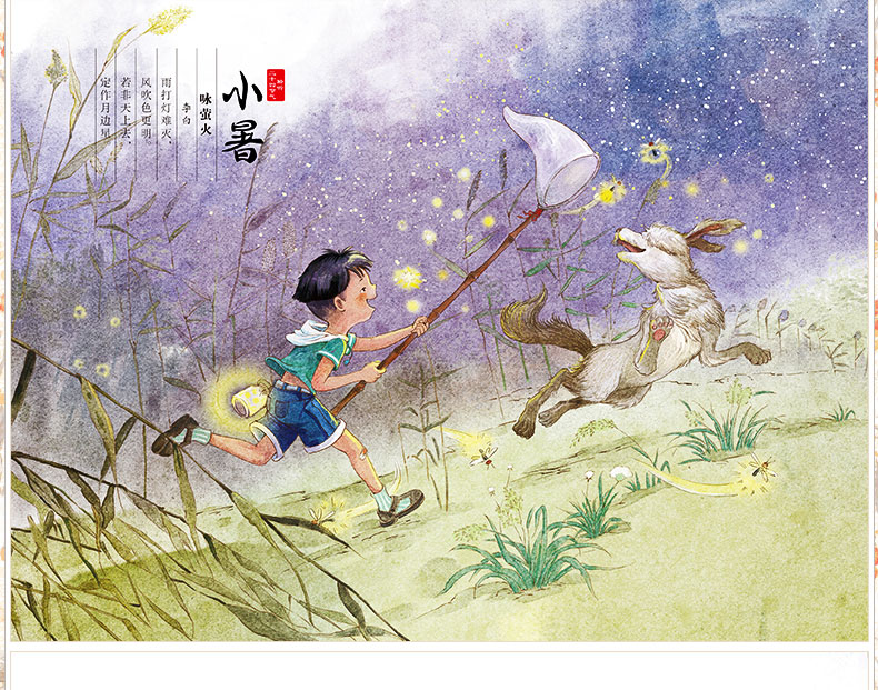 “聆听二十四节气”系列绘本详细介绍了一年所包含的24个节气及其相关知识。本系列以安安、浩浩两兄妹和他们的家人为主角,将故事融入到自然科学、民俗文化之中,从而引出与二十四节气的相关的气象三候、民俗节日、农事活动等内容。绘本不仅文字轻松优美,插图精致美观,还配有谜语、古诗、游戏和知识拓展等趣味板块。农耕文明留给我们的宝贵财富。