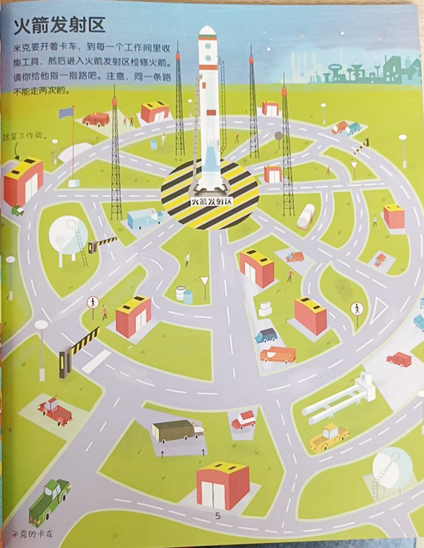 “大迷宫系列”是一套专门为3—7岁儿童创作的迷宫类益智游戏读物。引进自英国尤斯伯恩出版社。本套书由专业的设计师和插画师创作完成,画风清新活泼,富有童趣。玩迷宫能让孩子们在活泼有趣的纸上游戏中,锻炼区辨能力、手眼协调能力、视觉辨识能力和逻辑思考能力,培养观察力。这本书中有超过50个奇妙的迷宫,都和太空有关。有火箭发射塔迷宫、星星迷宫、宇宙飞船迷宫,也有火星迷宫、卫星迷宫、机器人网络迷宫。在走迷宫培养专注力的同时,让孩子了解更多关于太空的知识,激发探索太空的兴趣,培养孩子的理工思维能力。