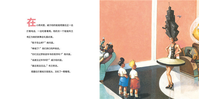 真正的作品不会诞生于明媚的阳光和闲谈,它们应该是夜色和安静的产物,乔伊斯的作品中的图画正是如此。书中复古怀旧的画风,通过各种色调的浓烈融合搭配,让一个虚构的未来世界栩栩如生。在过去与未来之间,是孩子用想象连接着物质世界与精神世界的桥梁,假如诚如哲人所言,“世间万物的真相,只有孩子才能*明确、*完全地看到”,那么,为孩子代言的作品,一定能够*明确、*完全地表达世间万物的真相。我想乔伊斯的作品正是如此,他的作品并没有因为时间的流失而退色,而满满沉淀,*终成为了经典,与未来更多的孩子相遇,也许,《未来小子》中那些构想的“未来”真的会在某天实现呢?