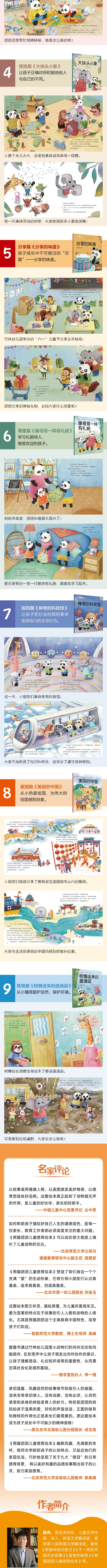 《熊猫团团儿童德育绘本》是一套给3-6岁孩子的原创德育绘本,以国宝熊猫为主要角色形象,讲述了风景秀丽的竹林小镇上,熊猫团团和妹妹圆圆以及幼儿园同学之间的成长趣事,旨在引导孩子学会自己的事情自己做,不任性, 懂得分享,宽容待人,尊敬师长,关心家人,遵守社会规则,爱祖国,爱大自然。九个故事生动有趣,有助于孩子逐步养成良好的行为习惯和建立正确的品德规范,为其以后的学习、成长以及幸福人生奠定基础。 本套丛书由中国儿童中心整合全国品德教育和绘本创作力量精心策划,北京师范大学公民与道德教育研究中心班建武教授、首都师范大学高峰教授、北京师范大学陈晖教授、原中国少年儿童新闻出版总社社长资深出版人海飞、国家图书馆社会教育部主任王志庚、儿童文学博士与儿童阅读专家王林等人给予专业指导,对熊猫有深入研究的儿童文学作家薛舟执笔撰写故事,国画绘本画家于洪燕设计角色形象,赖茜等八位青年童书插画师担纲绘画。参照《幼儿园教育指导纲要》与《幼儿园工作规程》对品德教育的要求,本套丛书围绕儿童的生活及他们与周遭世界的关系,汲取亲子共读的优势教育方法,从儿童与他人、与社会、与自然三个角度展开,分成自理篇、节制篇、关心篇、