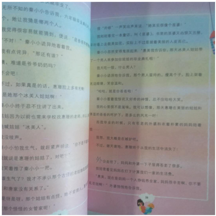 伍美珍的《看不见的阳台》和《亲亲姊妹坡》,则是两个充满探索性的长篇小说。《看不见的阳台》的主人公是一个十六岁的少女,她亲眼目睹了小姨纯真而又执著的爱情。在书中,她既是一个见证者,也是一个感受者。从某种意义上说,这是一本反映“爱的教育”主题的书。小姨对待爱情坚定、忍耐、守望的姿态,富有童话色彩和理想色彩。伍美珍的小说中,自有一种浓得化不开的柔情。这是她的作品深受读者欢迎的最主要的原因之一。