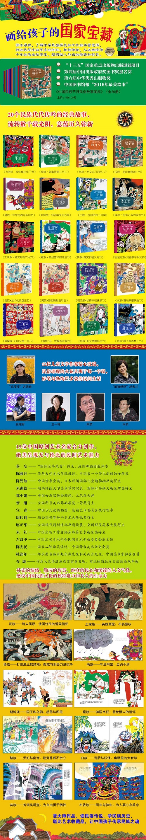 《中国民族节日风俗故事画库》是由中国很杰出的画家和传统文化研究专家联手打造的原创儿童图画书系,对中国各个民族的节日来源、节日故事、节日风情习俗进行艺术的描绘。第二辑共0本,每一本就是一个民族拥有代表性的节日风俗故事的艺术呈现。这些流淌于故事中的朴素的情感、勤劳的智慧、纯真的民心和深邃的人文气息,不仅构成了中华民族的精神象征之一,巩固了中国人的同源意识,展现了中国民族文化的独特魅力和长久的生命力。 本册书主要描绘了鄂温克族火神祭祀风俗的由来。相传很久以前有一位穷苦的猎人去打猎,在他又累又饿之时,猎人想去富人家求助,可被富人满脸嫌弃地赶跑了。猎人又去穷人家里,受到了穷人热情的招待。此时,猎人听见房顶上好像有人在说话:“看我今晚就去惩罚一下对面那个贪得无厌的富人!”猎人这才反应过来,原来房顶上说话的正是大家所敬畏的火神。鄂温克族将每年的十二月二十三日定为火神节。每到火神节,鄂温克族便会聚在一起庆祝。