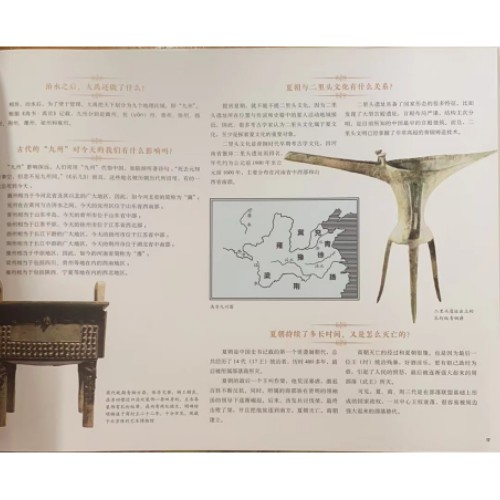 这是一套写给孩子的历史文化读物,由专业的艺术创作和写作团队联手打造,为小读者呈现了一幅幅充满艺术气息的历史生活画卷。 此次历史文化之旅的起点是远古人类的代表——北京猿人,终点是1912年清朝末代皇帝退位,在几十万年的长河中,我们选择了一些有故事感和场景感的专题,设置了符合孩子认知的思考点、兴趣点和知识点,每个主题之间既有时代上的联系性,又有主题上的独立性,孩子们可以像参观博物馆一样,随自己的爱好任意徜徉。 全书共104个历史场景,接近1000个知识问答,涉及了中国历史文化的方方面面,但形散而神不散,都是在为孩子打开一扇窗,通过一个个重要历史时刻,展现过去人们的日常生活和精神面貌。 分册内容简介: *册《先秦时代》 北京猿人是我们的祖先吗?大禹真的存在吗?拜孔子为师需要交学费吗?战国时期的人才可以随意“跳槽”吗?兵马俑原本竟然是彩色的?……