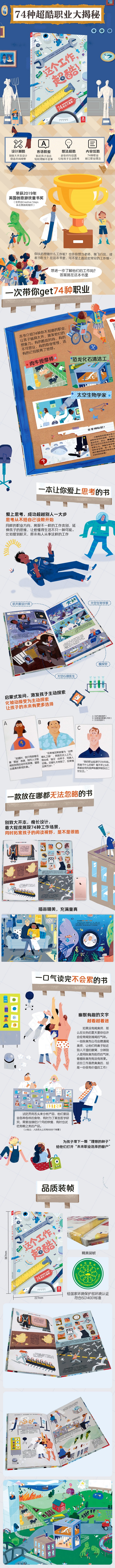 这是一本“另类”的职业启蒙书,书里介绍的小众职业并不是让孩子当成目标去如何如何向往的,而是给孩子一种“思路”——原来这也是一种工作!旨在增强孩子职业选择的信心,让孩子树立正面积极的职业价值观。书结尾提到:世界是不断变化的,“新工作”随时可能出现,哪怕你现在没有想做的工作,不代表未来不会出现,有时多做一些尝试也没什么不好。即便真的没有自己喜欢的工作,也可以“创造一个”。未来也许会因为你的创造而变得不同! 本书采取精装皮壳装订,开本为独特的“瘦长矩形”,开本较大,设计感较强,给人耳目一新的感觉。 本书以“职业”为科普内容,但选题不流俗,语言流畅、风趣,画面清新、温暖,给孩子独特的“职业启蒙”。 环保印刷,品质保证。