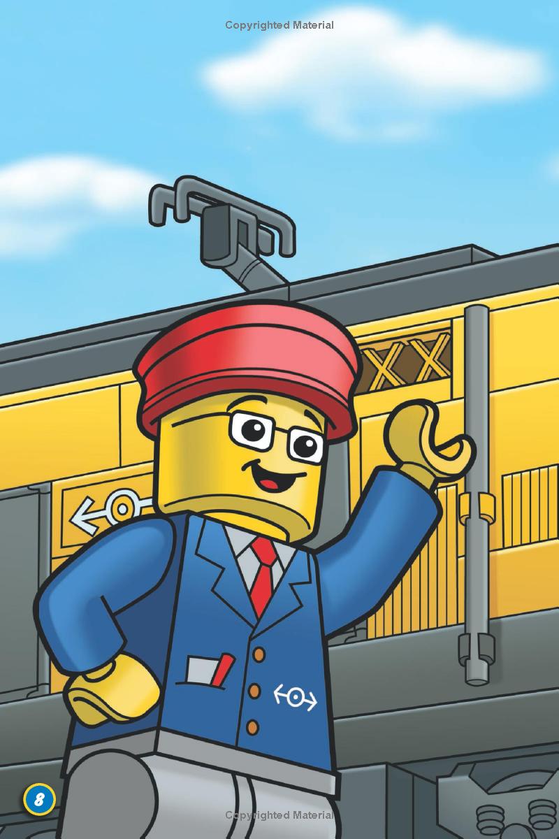 The cargo train is busy loading and unloading. The big crane can lift a car onto the train. Destination: Lego City. Emerging readers will be on the right track with this Level 1 reader. Full color.