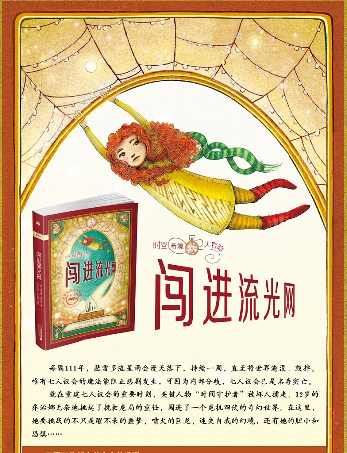 每隔111年,瑟雷多流星雨会漫天落下,持续一周,直至将世界淹没,毁掉。唯有七人议会的魔法能阻止悲剧发生,可因为内部分歧,七人议会已是名存实亡。 就在重建七人议会的重要时刻,关键人物“时间守护者”被坏人掳走。12岁的乔治娜无奈地挑起了挽救危局的重任,闯进了一个危机四伏的奇幻世界。在这里,她要挑战的不只是醒不来的噩梦、喷火的巨龙、迷失自我的幻境,还有她的胆小和恐惧……