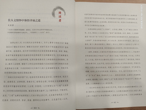 经常会有人问:作为现代社会的普通人,为什么要学习传统文化?难道就是为了增加文化知识,增强文化自信?或者只是为了写出高分作文?显然都不是。在我看来,我们学习的传统文化应该是祖祖辈辈创造,保存,精选,传承下来并希望我们弘扬的所有优秀物质文化和精神文化,它们凝聚着无数先祖的劳动,心血和智慧,增进个人和社会的幸福感才应该是我们学习传统文化的初衷和动力之源。只有把传统文化与每个人的人生幸福联系起来,传统文化的传承和弘扬才能真正落地生根。