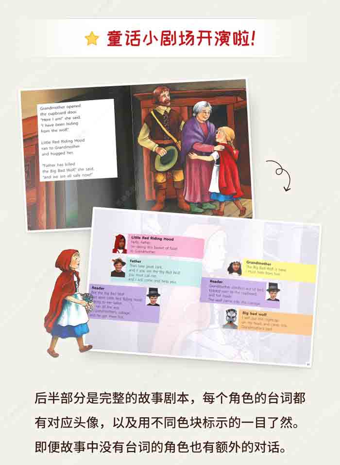 在阅读简单易懂的经典故事之后,可以根据剧本来排演话剧。