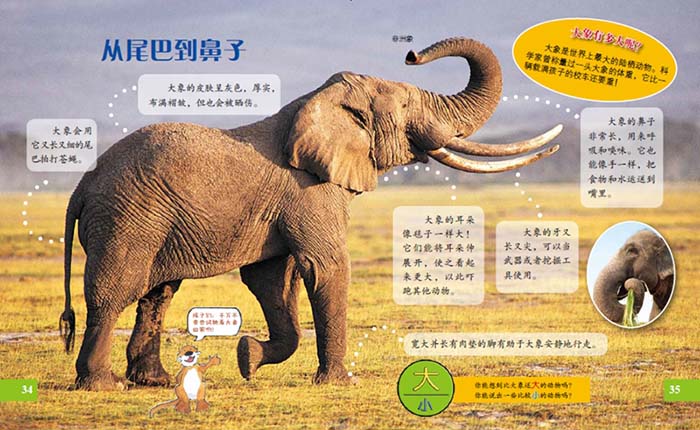 这是一本少儿百科类图书。全书主要介绍了7种动物,内容包含每种动物从整体书到局部的详细讲解,还有儿歌、故事、等多种对比,两册共三百页的常见动物大合辑。内容满足低幼儿童的阅读需要;照片与精细手绘图相结合,画风细腻温馨。另有家长知道手册和动手互动内容,加深孩子对动物的认知。