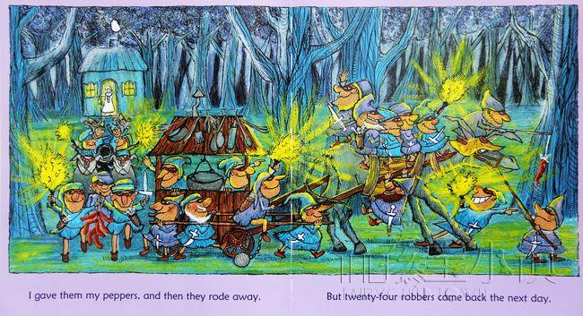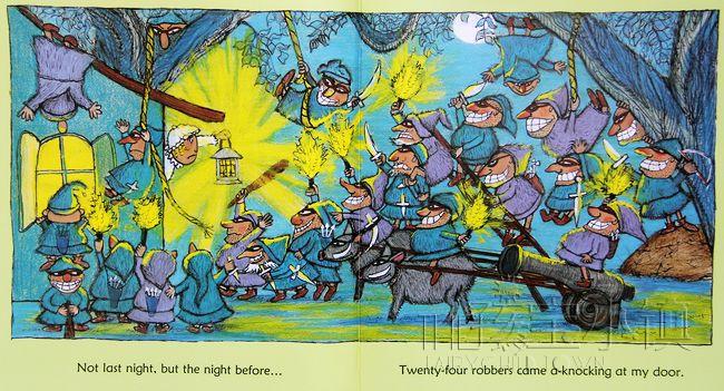 二十四个大盗总是来我家!我问他们需要什么,第一天他们要了辣椒,第二天拿走了玉米、最后是面粉!又过了一小时,他们又来敲门了!女主角无奈的开门,但这次她看到了? !二十四个大盗总是来我家!大盗们一次又一次的敲门到访,但因为女主角的和善与慷慨,最终大盗们不再抢夺而是分享!大盗们不同的生动表情与动作,更是增添翻页的小小趣味,快来一起进入二十四个大盗的世界吧!知名作家Andrey Wood以生动活泼的画风结合简单却押韵的文句,最终揭示了施比受更有福的小小道理!