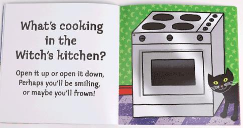What's in the Witch's Kitchen?女巫的厨房里到底会有怎样的好吃的呢?光是这个题目就太吸引眼球,让充满好奇心的小朋友们迫不及待要一探究竟。一本充满机关的翻翻书,不同的顺序看会有截然不同的效果哦~