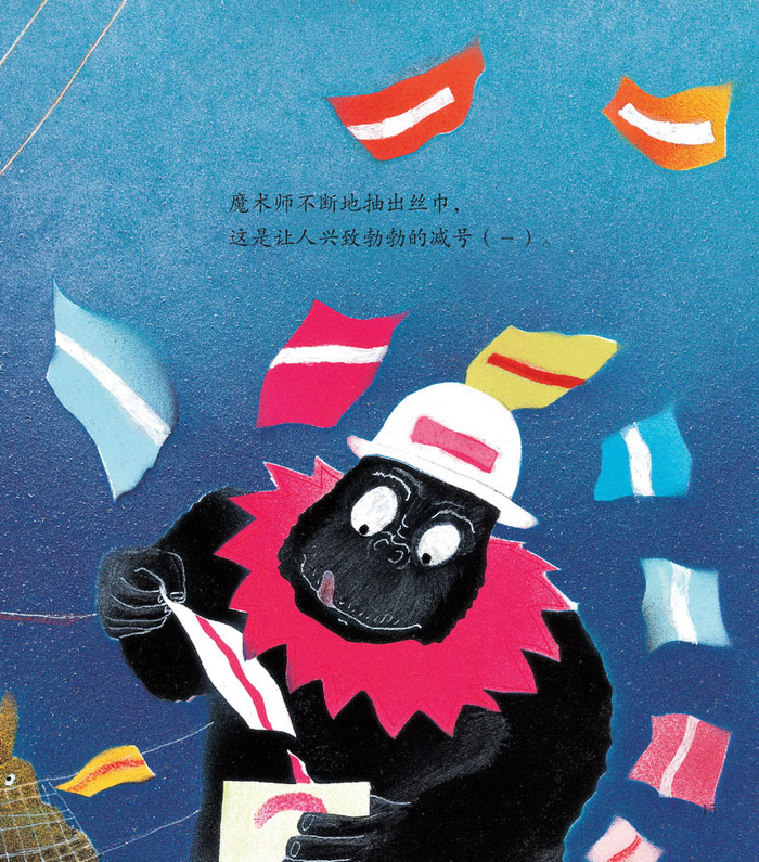 最最有趣的魔术表演就要开始了。“砰——”神奇的魔法箱子打开了,里面飞出来了什么呢?小丑、狮子和老鼠的脸上都有什么符号呢?走钢丝的杂技演员手里拿的是什么符号呢?气球上有什么符号呢?快来抓一抓这些会变的符号吧。