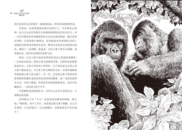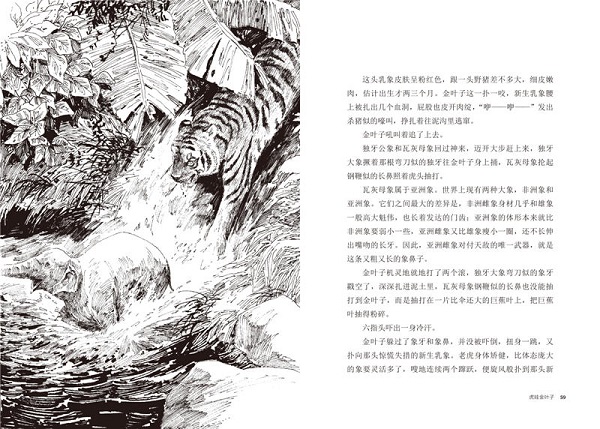 本书精选了十四篇中短篇作品,所涉及的动物种类包括老虎、豺、狼、羊、赤斑羚、猩猩、狒狒、猴和狗等。其中《虎娃金叶子》讲了一个被村里人认为是“琵琶鬼”的长着六个指头的人,名叫六指头,在小的时候和阿妈流浪在山原间。一天,六指头出去打猎时,遭到一只母老虎袭击,顺藤摸瓜捡到一只雌虎仔,起名金叶子。六指头辛辛苦苦把金叶子养大,金叶子也不忘六指头的恩情,冒死救了六指头而自己却葬身于莫爷的手下的感人故事。