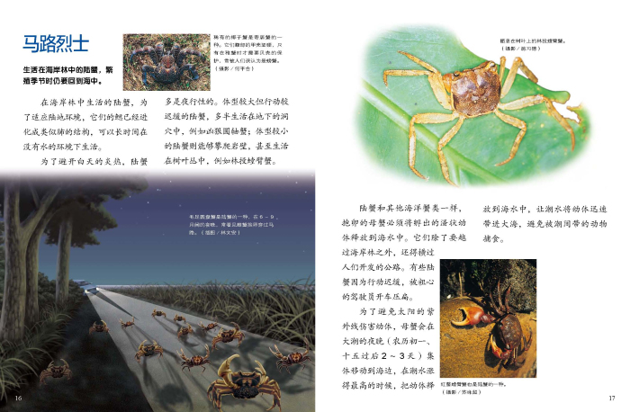 生活在海岸林中的陆蟹,繁殖季节时仍要回到海中。