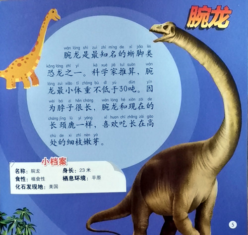 本书是一套带拼音的恐龙小读物,主要介绍各种恐龙、与恐龙同时期的一些生物,合计66种。以三叠纪1册,侏罗纪2册,白垩纪3册的顺序,进行内容划分,尽最大努力还原远古时代恐龙生活的场景,恐龙上色以普遍认可色调为主,给小读者插上想象力的翅膀。本册图书主要是介绍白垩纪早期出现的恐龙,以尽量简单的文字介绍恐龙的基本特征,方便小孩认识和理解。白垩纪时期恐龙在地球的繁衍达到巅峰,这个时期恐龙是地球上真正的主人。恐龙繁衍出各种各样的不同形态,很多新生代生物就是在这时期开始出现雏形。