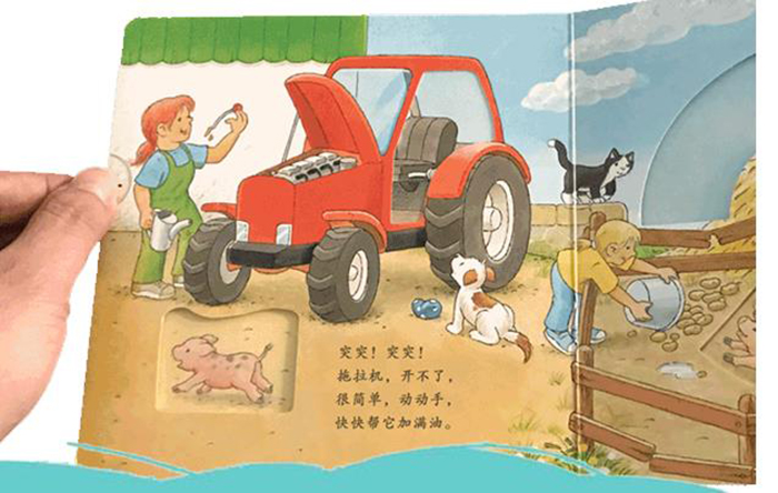 拖拉机,真忙碌本书用趣味昂然的儿歌和色彩缤纷的绘图,为小朋友展示了拖拉机在农场上一切可能发生的事情。通过在书本上可以推动与翻转的设计,小朋友可以不断地温习农场上的生活,也会一再地发现惊喜。