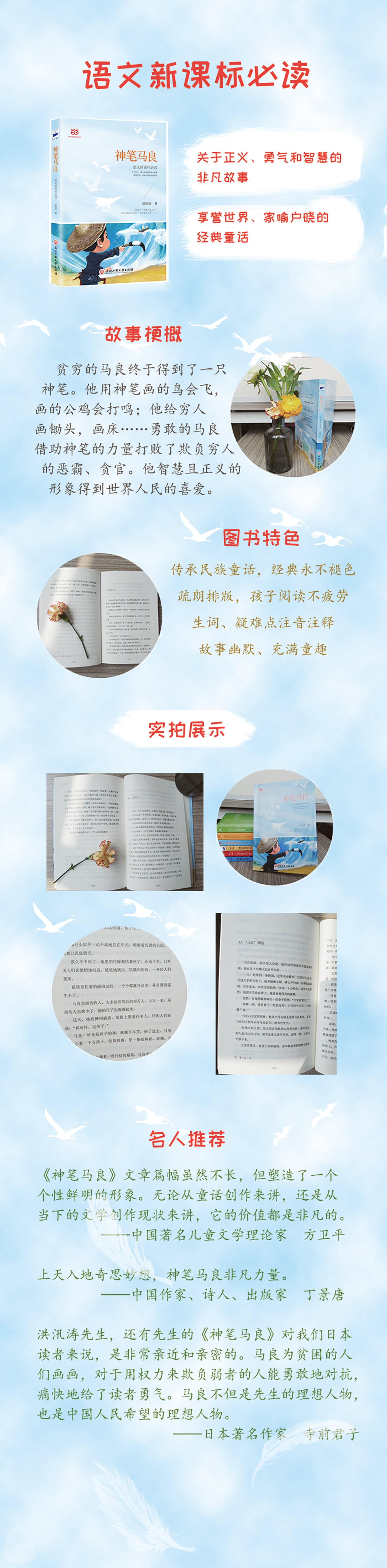 马良勤奋好学、机智勇敢、富有正义感,像极了我们身边无数平凡又认真生活的人,让小读者读来十分有亲切感。
