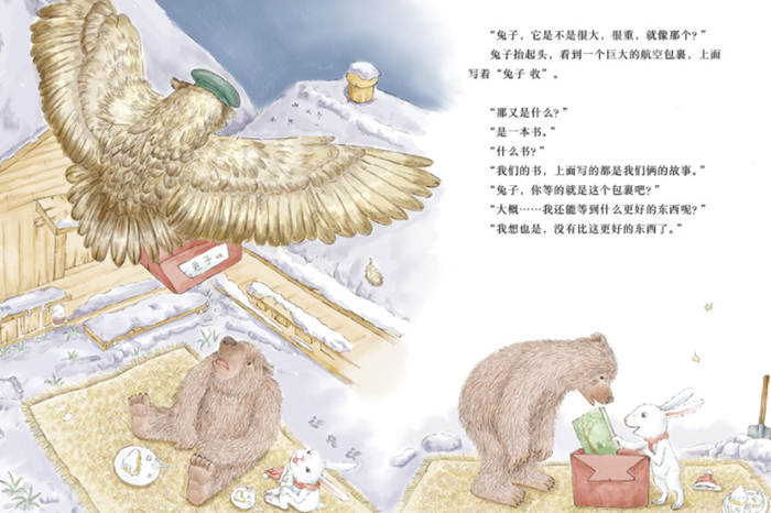 《熊和兔》是一套中国原创图画书,是一系列适合3~8岁儿童的友谊主题图画故事。熊和兔子,一个憨厚朴实,一个机灵古怪。他们是那么地不同,但却是最好的朋友。因为,真正的友谊不会被性格差异所阻碍,理解、包容、体贴和爱,才是友谊的厚重基石。《够不着》是其中一本,讲述的是熊和兔子一起去放风筝,兔子随着风筝飘到了半空中,熊怎么也够不着,这可把熊给急坏了。为了救兔子,熊想出了各种各样的办法……有时候,友谊就像一堆温暖的篝火,给人帮助、安慰。