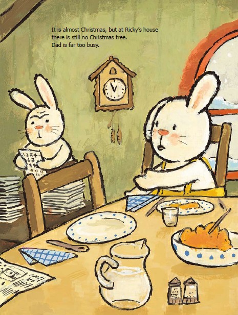 It is nearly Christmas but at Ricky's place the Christmas treeis still missing. Dad is much too busy to go and get one.But todaythey really have to go to the tree market. Dad at first doesn'tfeel like it, but thanks to Ricky's enthusiasm it doesn't take longfor him to thaw out completely.