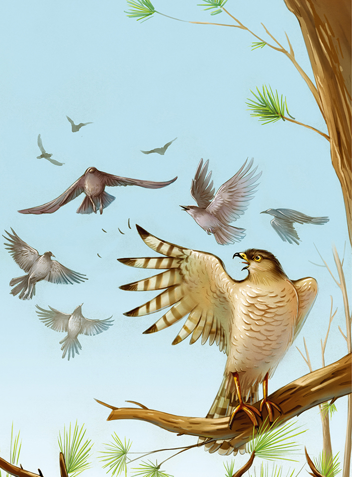 夏天的森林绚丽多彩,燕麦穿上了长袍,黑麦向大地弯腰,北方到处都是金灿灿的云莓,南方的果园里长满欧洲樱桃。森林里的狐狸把獾撵出了家门;小鸟顾不上歌唱,忙着照顾幼小的生命;貂满林子转悠,寻找粗心大意的小老鼠……