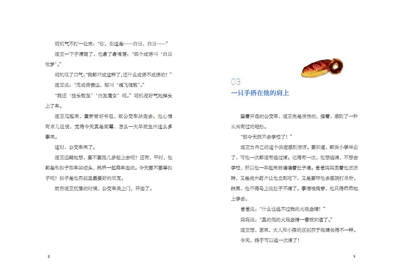 忽然,波亚打了一个喷嚏。他想起奶奶说过的话,打喷嚏说明有人在想你。难道是爸爸和妈妈?难道有火眼金睛的他们看出了自己想逃学?难道他们已经追来了?