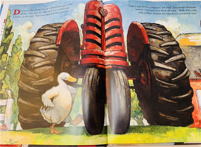 达克在农场骑自行车取得了开创性的成功,他为此兴奋不已,决定准备开拖拉机。就像在畅销书《骑自行车的鸭子》中一样,所有谷仓院子里的动物们一边看着鸭子做着不可思议的事情,一边分享着他们幽默的评论。然后,一个接一个,他们加入他的拖拉机上兜风!