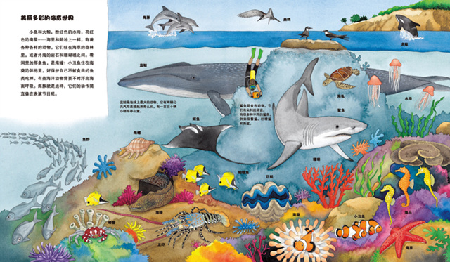 “哞——”“咩——”“喳喳”“叽叽”……你懂得动物的语言吗?你知道动物怎样“穿衣服”吗?……还有美丽多彩的海底世界也在等着你来哦!