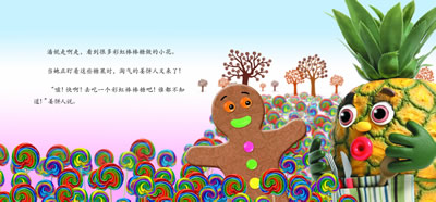 菠萝潘妮来到了巧克力森林,她想拿些糖果给小土豆杰克做一个生日蛋糕。巧克力士兵却告诉她,如果要拿这里的东西必须征得国王的同意,潘妮答应了巧克力士兵的要求。虽然淘气的姜饼人总是跑过来不停地说“赶快吃一个吧,反正谁都不知道”,但潘妮还是遵守了诺言,因为她明白:说过的话就一定要算数。