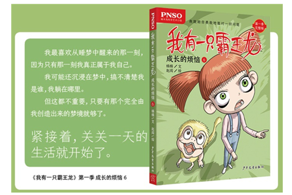 《我有一只霸王龙》第一季第一版获2015年中国童书榜年度优秀童书奖。这本心灵成长绘本小说系列的创作始于2011年,是一部关于红头发女孩和霸王龙的童话。书中虚构的独立世界被命名为乐土城,作者让这个虚构的城市承载了人类需要面对的众多问题,而解决问题的是书中的主人公一个11岁的红头发小女生关关和她的霸王龙。在这对小伙伴离奇古怪的日常生活中,困惑人类的众多问题变得轻松有趣,不再沉重,也让我们认识到,每个人都有着自己的喜欢与害怕,有着感情上的需要和被需要,以及自己快乐悲伤共存的曲曲折折的成长故事。这本书讲述了红头发小女孩关关领养了一只可爱的霸王龙,以及随之而来的一系列关于两位小伙伴碰撞和融合的可爱故事。
