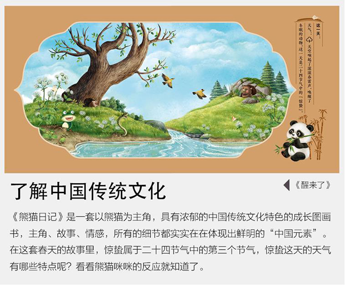 《熊猫日记》是著名儿童文学作家杨红樱首次为学龄前儿童创作的启蒙图画书,共40册,首推“春天的故事”10册。全书以一只名叫咪咪的大熊猫为主角,以日记体的形式,从温暖的春天写到寒冷的冬天,将新奇有趣、丰富多彩的知识融入字里行间。故事里的熊猫咪咪有一双会发现的眼睛和一颗好奇的心,他快乐地游走在大自然和人类之间,带领小读者去观察、认知、感悟。本册为《我想上幼儿园》,熊猫咪咪想知道人在小时候是怎么过的,他和青蛙呱呱跟着宝宝和贝贝来到了幼儿园。幼儿园里有很多小朋友,他们在一起唱歌、做游戏,开心极了。宝宝和贝贝都爱上幼儿园,大熊猫咪咪也想上幼儿园。
