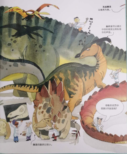 在书中,恐龙不再是一个个生涩的名词、一块块冰冷无生命气息的化石,反而像在史前场景中活灵活现表演的演员,每一个小故事都可以说是一个亿万年前恐龙的生活画卷,我想这才是大众喜欢的恐龙科普形式吧。当然,这也是我向孩子们推荐这套恐龙科普读物的理由。