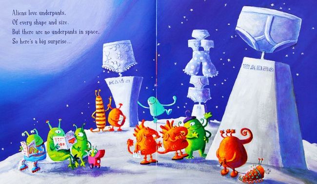 內容非常有趣,让你看过后一定哈哈大笑。故事描述一群外星人,他们都好喜欢内裤,不同颜色、尺寸与大小的内裤他们都好喜欢,不过只有一个小小问题,就是在外太空中沒有内裤,所以这些外星人即將来到地球来买内裤吗?喔,不是,所有的小朋友们,大家要都要看好自己的内裤哦,小心被外星人偷了。