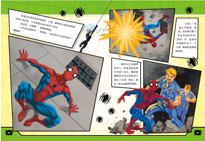 对于4—8岁的男孩来说,一本好的图书既要有引人入胜的故事情节和细节丰富的精彩图片,还要有让男孩有身临其境的感觉,融入故事所要营造的氛围,潜移默化地感受图书主人公的人格魅力。当然,这一切的前提必须是男孩熟悉并喜爱着这本图书的主人公。《超级英雄就是我》正是这样一套以故事为主、带领男孩挖掘自身优点、启迪男孩创意思维的互动故事书。书中的主人公——蜘蛛侠无疑能够担当得起这样一个角色,他每一次智斗反派的经历都充满了惊险与乐趣,而他的每一次成长也都诠释了力量、责任与梦想。正是这样的情节描写与人物设定,男孩们可以看到蜘蛛侠是如何学习责任与担当、勇于接受挑战的心路历程。