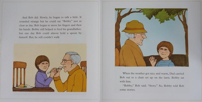 This touching story about a young boy coping with his grandfather's disability has long been one of Tomie dePaola's most popular picture books. Now, for the first time, it is available in a larger format, full-color edition—perfect for family sharing. Readers of all ages will love to watch Grandpa Bob teach Bobby to walk, and how Bobby returns the favor when Bob has a stroke, all in beautifully rich full color.