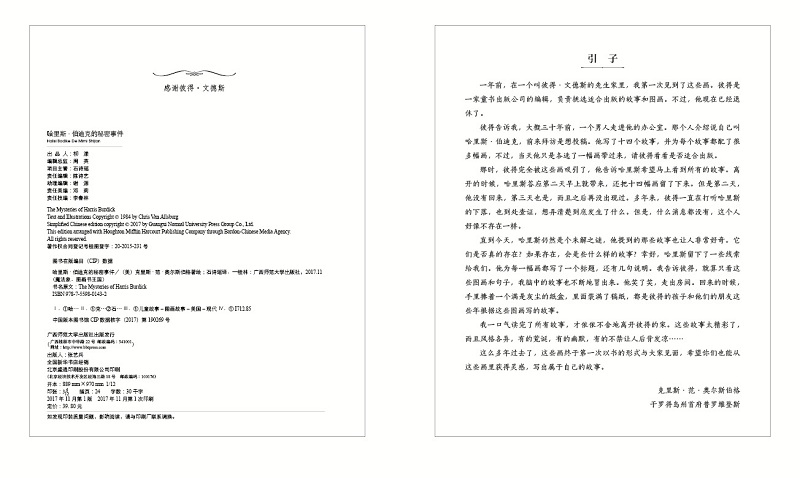 .奥尔斯伯格善于用文字引导读者,也善于运用细腻的画面和变幻的光影,营造谜一样的超现实氛围。本书亦真亦幻的气氛,带给孩子无尽的遐想。