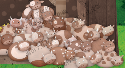 这是封面,好多萌萌哒的小奶牛,颜色都一样,长得也差不多,但仔细看就能发现每只都有自己独特的特点:有戴眼镜的,有睫毛长长的,有眼睛周围长着爱心斑点,有的左右两只眼睛周围的斑点大小不同……这些奶牛身上的斑点也不尽相同。