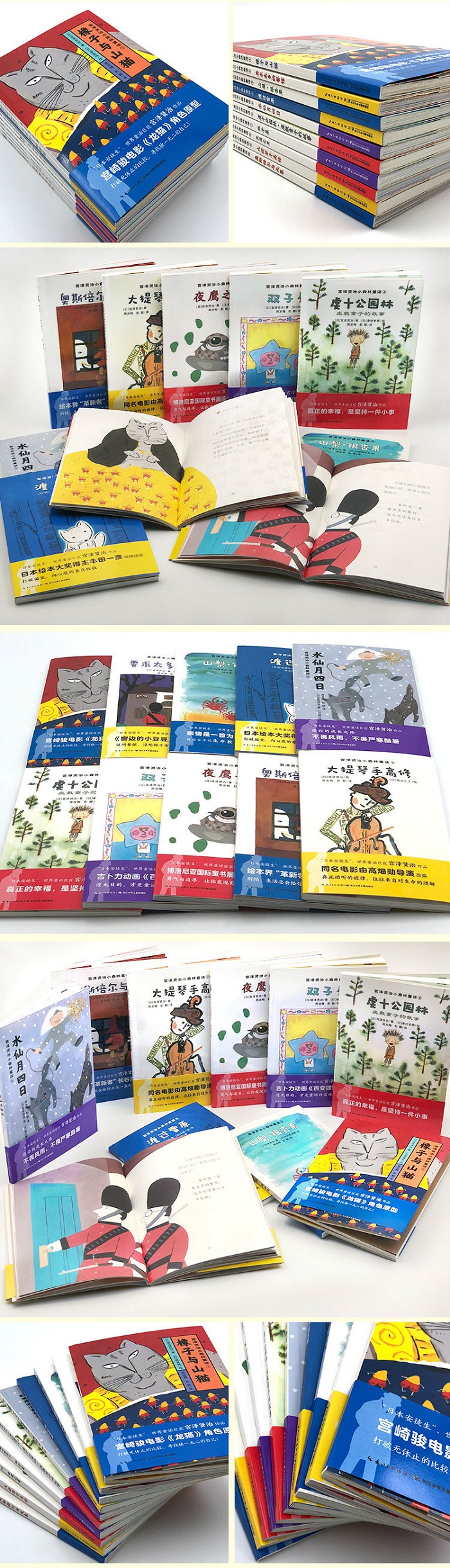 《宫泽贤治小森林童话》从宫泽贤治超过100篇童话中,精选了12个适合6-10岁阅读的童话故事,并特别邀请了10位日本当红绘本大师为图书进行插画,包括《窗边的小豆豆》设计师、博洛尼亚特别奖得主、日本绘本大奖得主等多位在国际上有较高知名度的作者,整套图书充满了艺术性与想象力。同时,本书中文译本邀请了日本儿童文学专家彭懿为每篇童话撰写导读,帮助家长和小朋友理解童话之美。